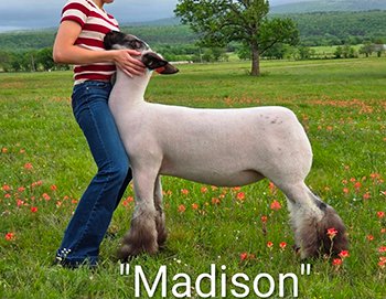 This past year, her maternal brothers were Reserve Dorset at Denver, Champion Whiteface at Cheyenne Livestock Expo, Champion Dorset & NM State Fair & Reserve Speck at MO State Fair. Her maternal sisters also raised the Champion Speck at Aksarben, Reserve WFX at Arizona National & 3rd Overall WFX at American Royal. She comes from a long line of proven genetics & champions.