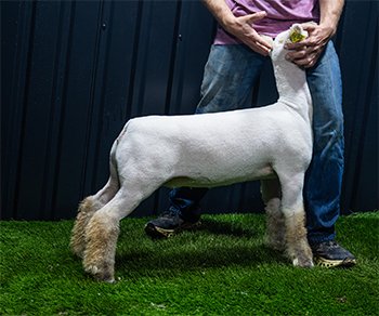 Athletic ewe lamb that combines style, power, and balance to hang with the best of them. Built for the ring now, and bred to be a major asset in the lambing barn later on.